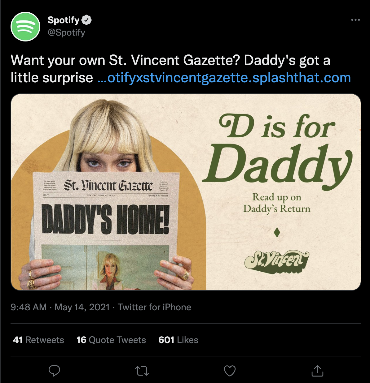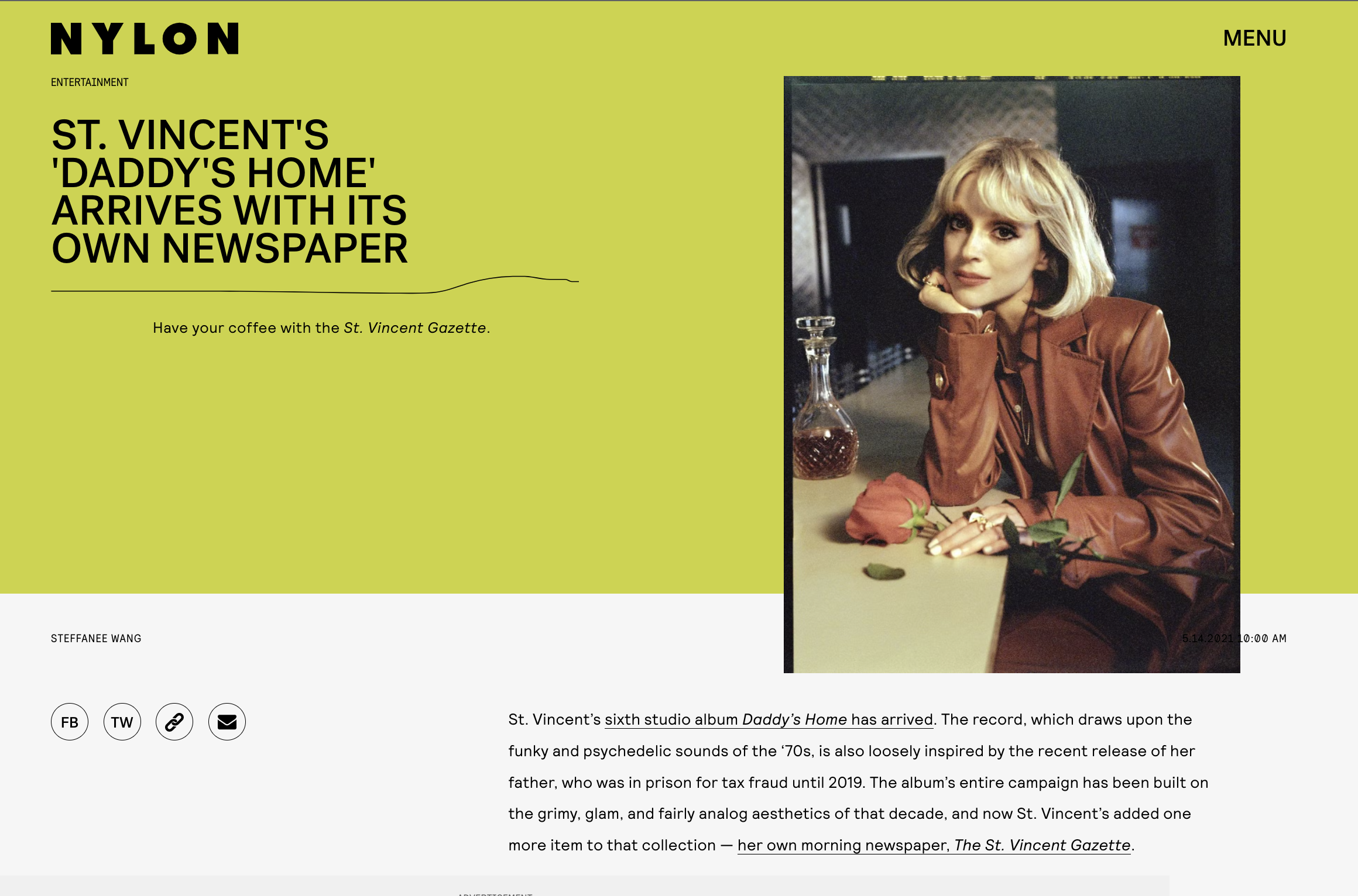 For St.Vincent aka Annie Clark’s sixth studio album “Daddy’s Home”, I worked closely with the artist to create an 8-page gazette inspired by the funky, 70’s psychedelic sounds of her new album, that was then distributed as a collateral to her top 300 fans, through Spotify.
